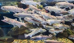 美杉特産のあまご20匹が泳ぐ水槽を中心に、立体感のある個性的なレイアウトで子供から大人まで楽しんでいただきます。