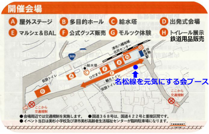 名松線を元気にする会ブースの位置は伊勢奥津駅を出て一番近い場所です。