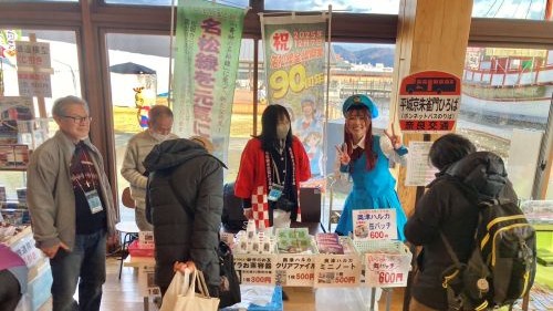 | 美し国おこし・三重のイベントがメッセウイング・みえで開催され、名松線を元気にする会は展示、物販、交流スペースで名松線の利用促進のPR活動を行いました。前葉津市長にも激励いただきました。 | |