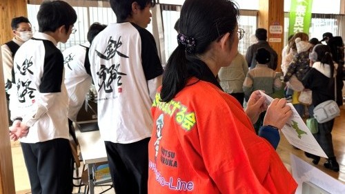 ![]() ▲伊勢奥津駅前で名松線を元気にする会がお出迎え |