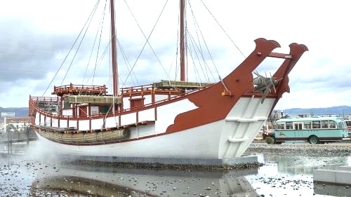 ![]() ▲復元遣唐使船はたまに霧のスモークが出ていました |