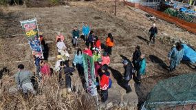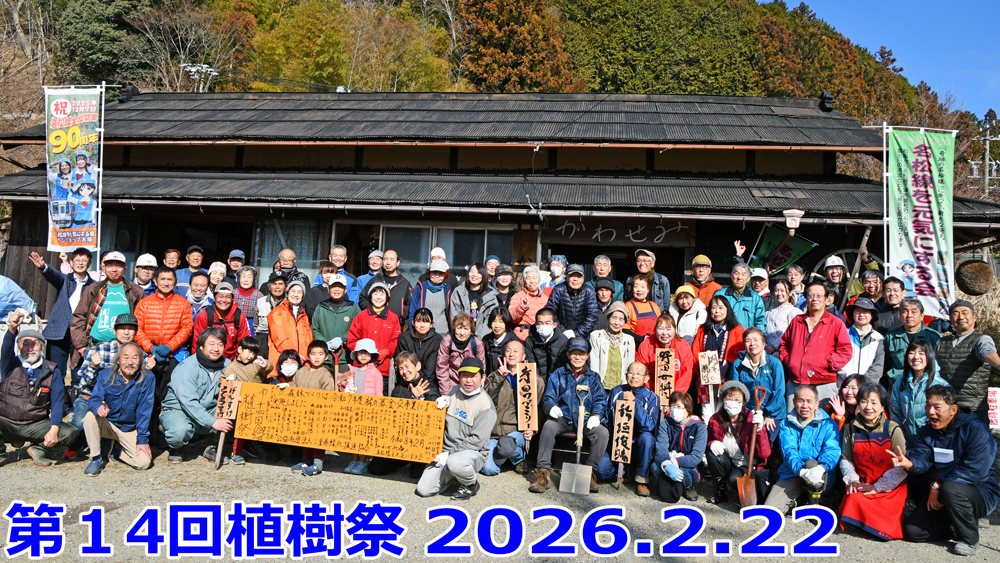| 毎年恒例の植樹祭は天気にも恵まれ、93名が参加してミツマタやハナモモなどを手際よく植え付けることができました。 今回は名松線伊勢奥津駅から徒歩5分ほどの平坦な場所で、現在架け替え工事中の八幡橋のすぐ近くです。数年後には新しい道路沿いにミツマタが咲き乱れる風景が期待されます。 |