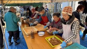 ![]() ▲つきたてのお餅をに、大根おろし・きなこ・あんこをのせた食のふるまい |